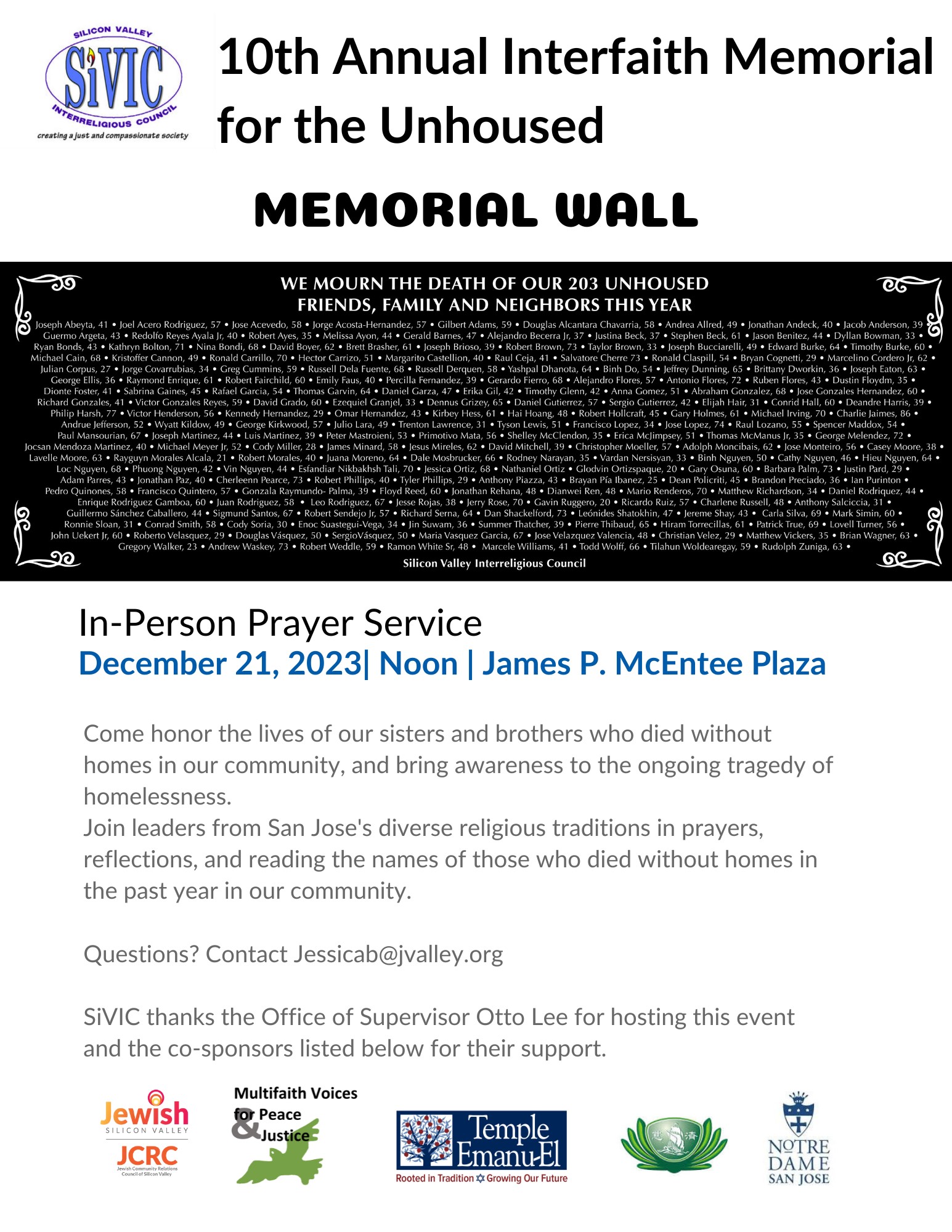 10th Annual Unhoused persons’ Interfaith Memorial Service