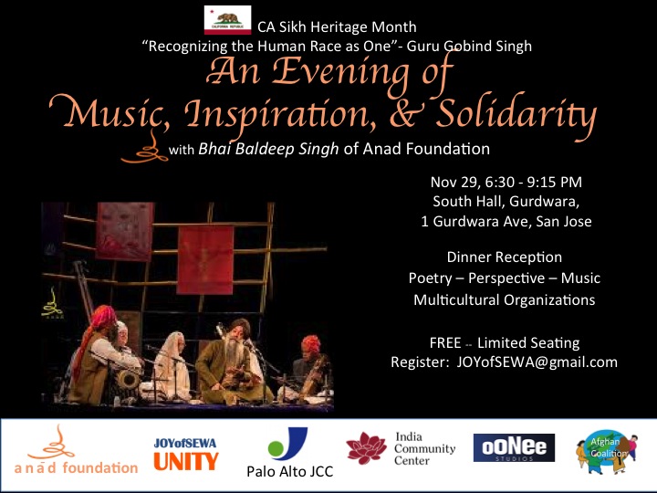 - 7:30-‐ 9:15 Program: poetry, perspectives, and music and Gurmat Sangeet by from various artists and Bhai Baldeep Singh